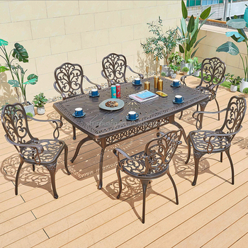 ダイニングセット屋外ガーデン用鋳造アルミ耐久性バーベキューテーブルと椅子6脚